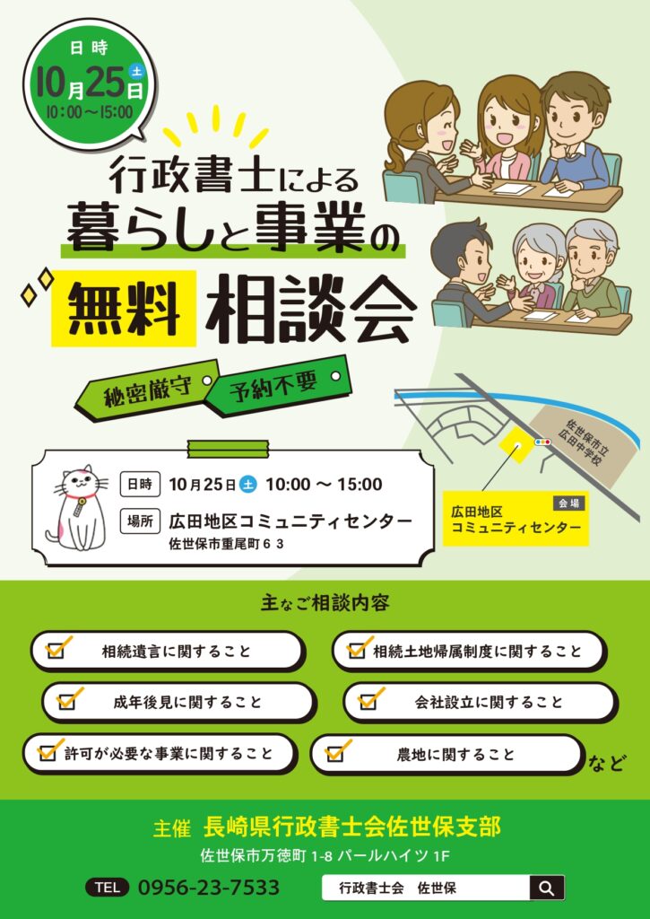 長崎県行政書士会 佐世保支部無料相談会開催のお知らせ